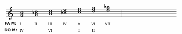 Los acordes comunes entre las tonalidades de Fa M y Do M son los siguientes